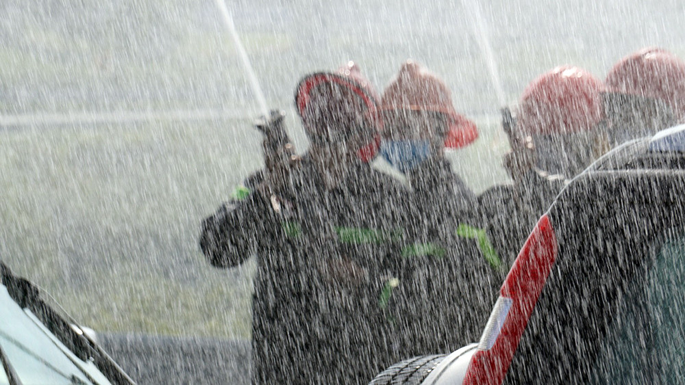 Cảnh sát PCCC triển khai đội hình, kéo vòi nước để tiến hành dập lửa, tránh sự cố cháy nổ.