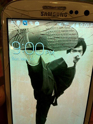 Những chiếc smartphone khiến người xem thích thú bởi sự kết hợp khéo léo giữa hình nền và các đường nứt trên mặt kính.