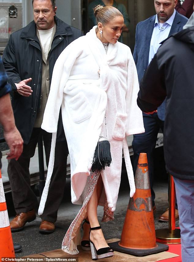 Tuy nhiên, việc mặc trang phục gợi cảm dưới thời tiết 16 độ C là trải nghiệm không mấy dễ chịu. Nữ diễn viên "Hustlers" nghiến răng chịu đựng cái lạnh ập đến khi vừa xuống khỏi xe.