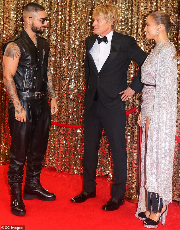 Hôm thứ Ba (22//10, giờ địa phương), Jennifer cùng bạn diễn Owen Wilson (mặc vest) và Maluma quay phân cảnh đi thảm đỏ tại một sự kiện giả tưởng trong phim.