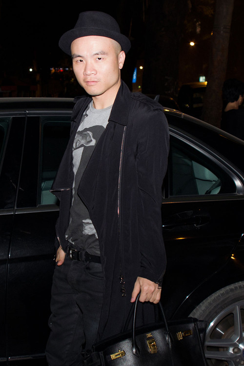 Xuất hiện tại sự kiện này, Đỗ Mạnh Cường cũng gây choáng khi khoác lên người toàn những thương hiệu nổi tiếng với quần Dior, áo T shirt Victor & Rofl, giày YSL, áo khoác Philip Lim và túi Birkin Hermes.