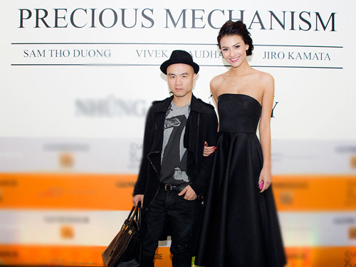 Tối ngày 6/12, Hồng Quế sánh vai nhà thiết kế Đỗ Mạnh Cường tới tham dự đêm khai mạc triển lãm nghệ thuật mang tên “Những cỗ máy quý” của Nhà thiết kế trang sức người nước ngoài Vivek Chaudary tại bảo tàng phụ nữ Hà Nội.