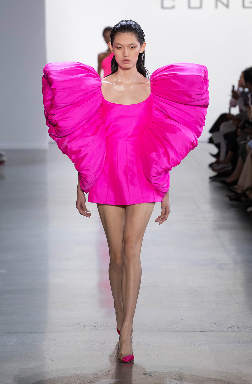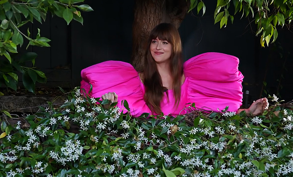 Dakota Johnson - nữ diễn viên nổi tiếng với vai nữ chính trong loạt phim 50 Sắc Thái lựa chọn mẫu đầm mini hồng thuộc look 19 trong bộ sưu tập CONG TRI Spring Summer 2020 Đi Nhặt Hạt Sương Nghiêng.