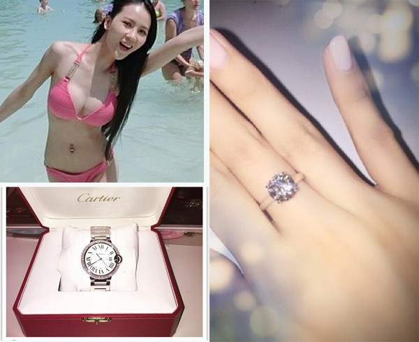 Trong tấm ảnh, có thể nhận ra, Châu Trác Hoa ngồi ở dãy ghế phía sau Miko. Cô vui vẻ chia sẻ những món quà đắt giá từ đại gia, trong đó có nhẫn kim cương và đồng hồ hàng hiệu.