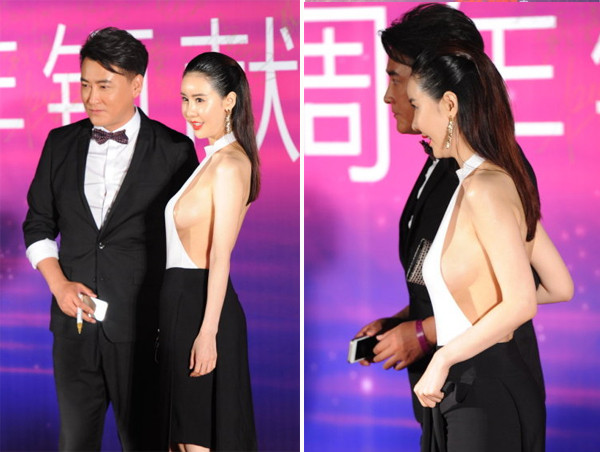 Bất chấp việc bộ ngực gần như lộ hẳn ra trước ống kính báo chí, Vịnh Lâm vẫn tự tin khoe sắc trên thảm đỏ.