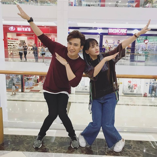 Dù ở nơi đông người nhưng Bảo Thanh và Chí Thiện vẫn không hề e ngại. Cả 2 cùng tạo những dáng thật hài hước.