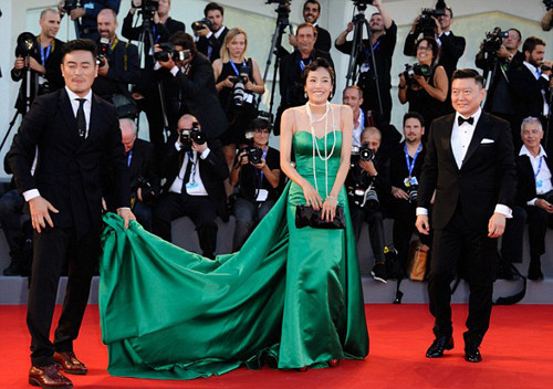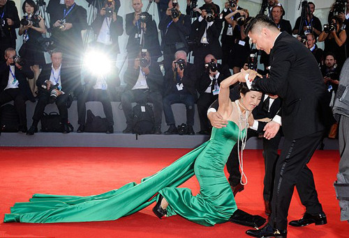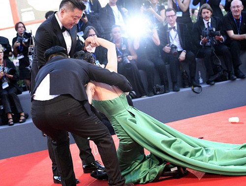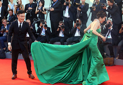 Ngày 1/9 (giờ địa phương), các ngôi sao xuất hiện tại thảm đỏ Liên hoan phim Venice dự buổi chiếu phim "The Light Between Two Ocean" của Alicia Vikander và tài tử Michael Fassbender. Diễn viên Trung Quốc