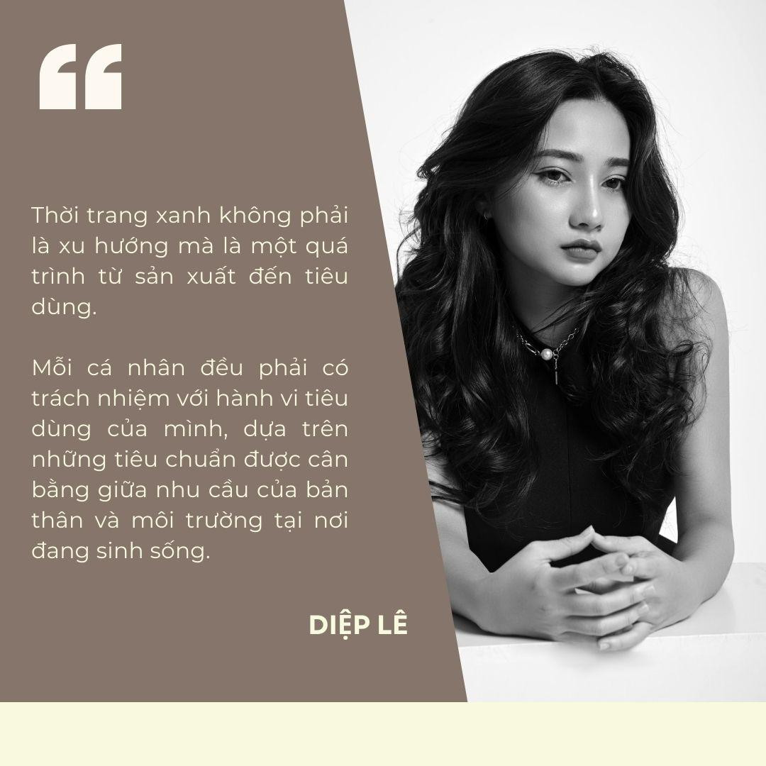 “Bắt đầu đơn giản từ việc thay đổi thói quen tiêu dùng bằng cách chọn lọc những sản phẩm phù hợp, chất liệu tốt nhằm kéo dài tuổi thọ hoặc thanh lý nhằm tăng vòng đời của sản phẩm, Diệp Lê cho biết.