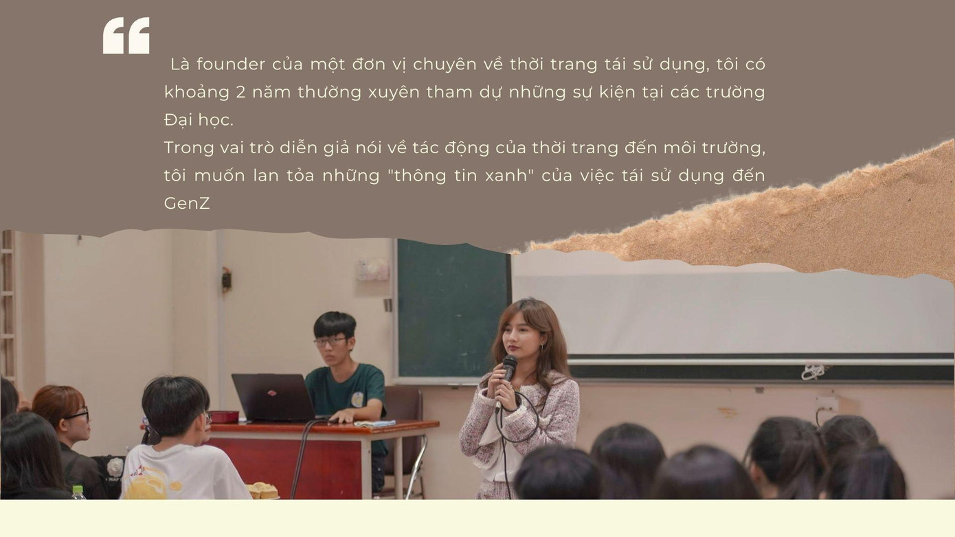 Chia sẻ với Tiền Phong, Founder Give Away cho biết quan điểm về thời trang xanh, cũng như tư duy hình thành văn hoá mua sắm bền vững.