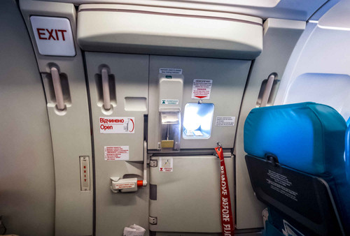 Cửa thoát hiểm là loại được thiết kế khóa lại dựa trên sự chênh lệch về áp suất trong và ngoài. Nó được kích hoạt ngay khi động cơ máy bay bật và không khí trong cabin điều áp. Lúc này, chỉ cần một lượng nhỏ áp suất trong cabin là có thể khóa chiếc cửa thoát hiểm .