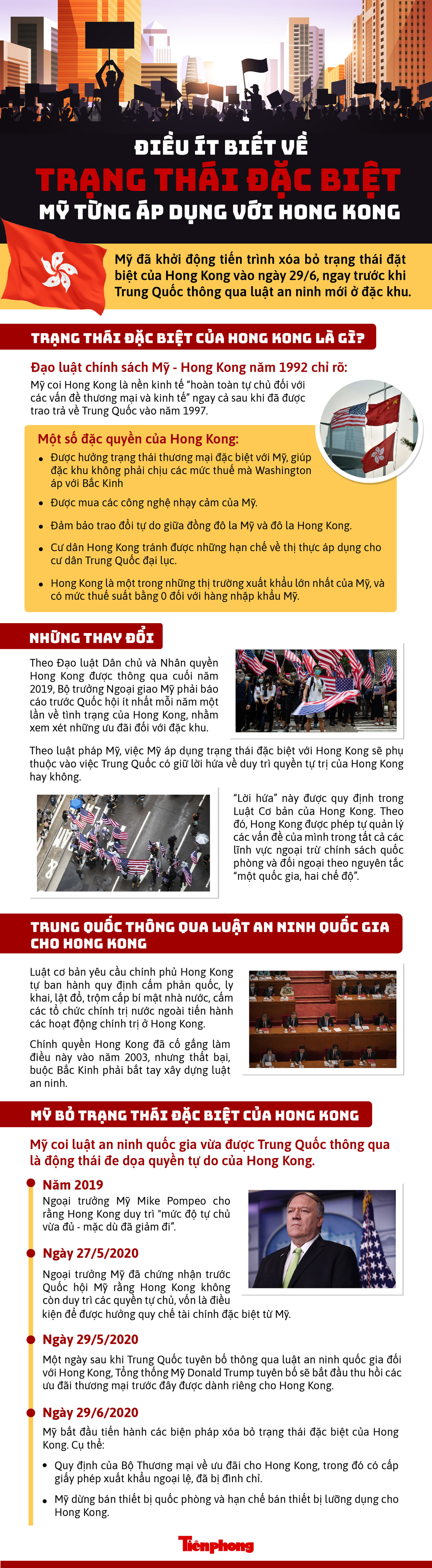 TPO - Mỹ đã khởi động tiến trình xóa bỏ trạng thái đặt biệt của Hong Kong vào ngày 29/6, ngay trước khi Trung Quốc thông qua luật an ninh mới ở đặc khu.