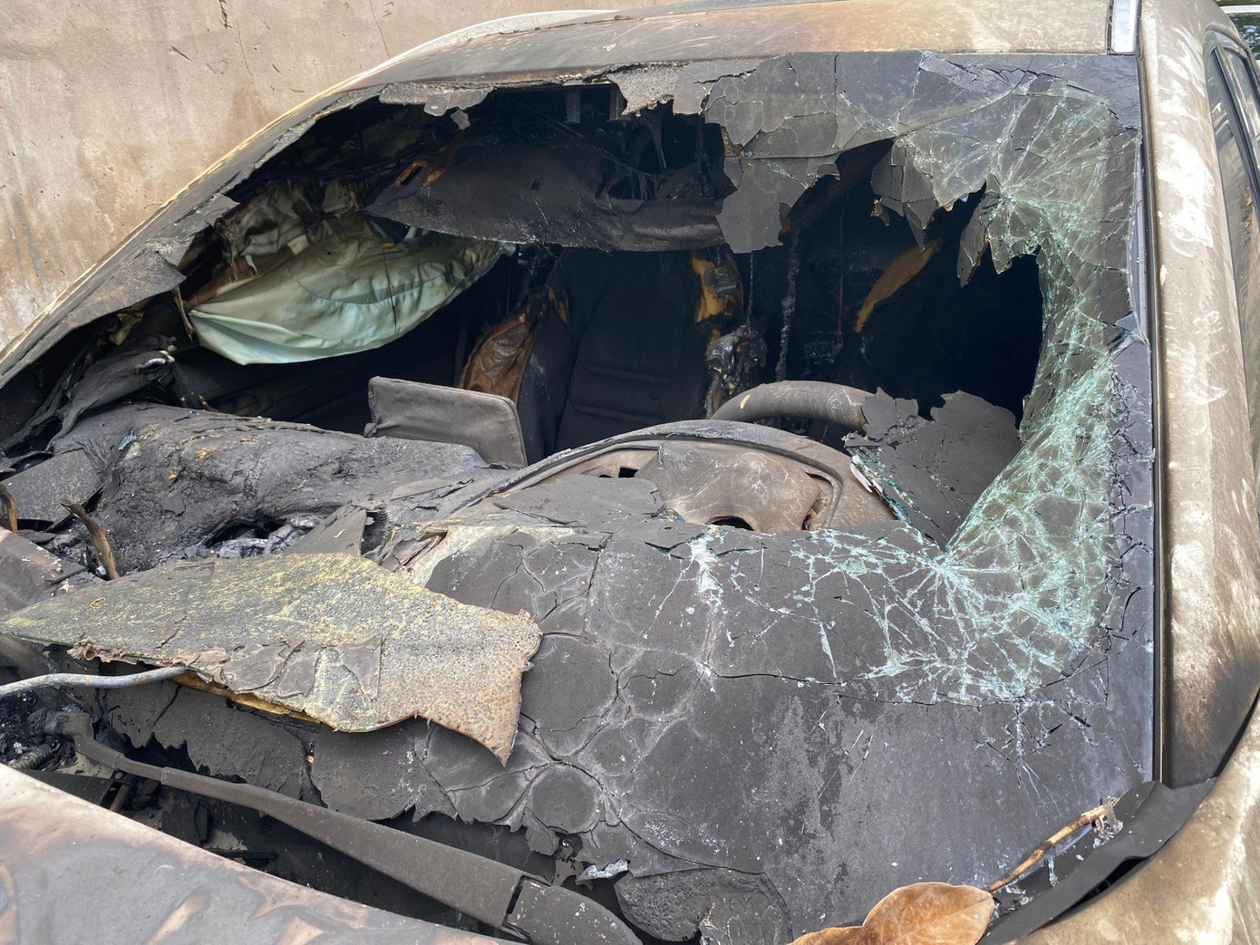 | Vụ cháy khiến xe ô tô 7 chỗ hư hỏng hoàn toàn. |