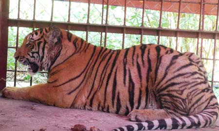 “Thời điểm tiếp nhận hai cá thể hổ gồm 1 con đực và 1 con cái trong tình trạng hôn mê sâu, bị thương, chân phù nề do bị trói. Con đực nặng 90kg còn con cái nặng 70kg. Đây là 2 cá thể hổ Đông Dương, thuộc nhóm động vật 1B, quý hiếm. Ngay sau khi tiếp nhận, trung tâm cứu hộ động vật của Vườn đã nhốt 2 cá thể hổ này ở hai chuồng khác nhau để thuận lợi cho việc điều trị, chăm sóc”, ông Cường cho biết.
