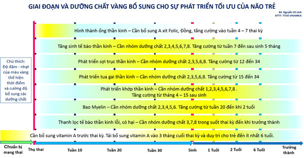 Là những dưỡng chất cần thiết cho cả mẹ và con trong quá trình chuẩn bị, mang thai và những năm tháng sau sinh. Chúng phải được cung cấp đúng, đủ, đều (đúng về thời gian, đủ về liều lượng và đều về tần xuất). Nếu để lỡ nhịp hay khiếm khuyết các yếu tố nêu trên thì không có cơ hội thứ hai cho sự phát triển tối ưu hệ thần kinh của trẻ.