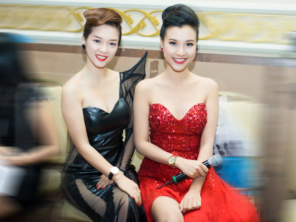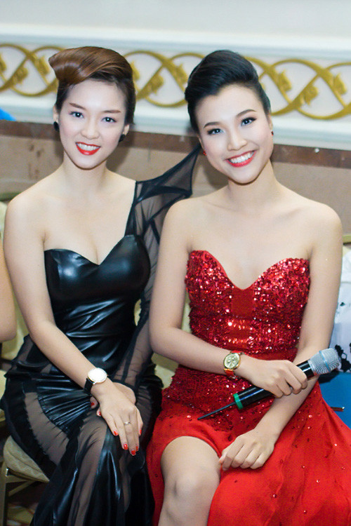 Hình ảnh Hoàng Oanh và Đinh Hương gợi cảm với váy cúp ngực:
