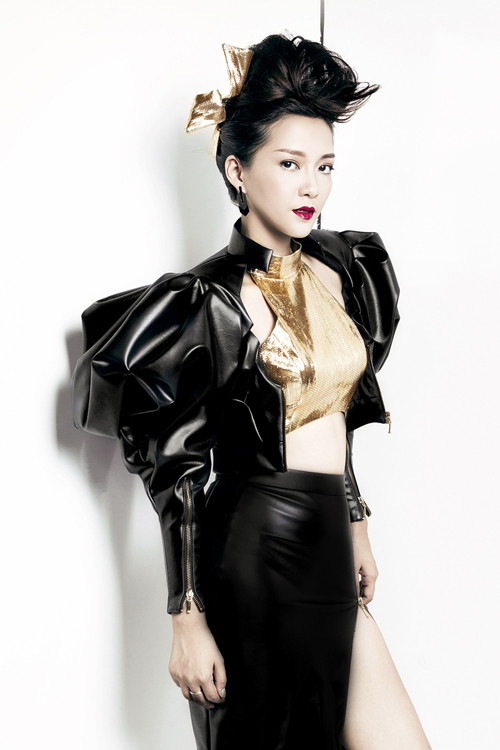 Mix áo croptop với chân váy da xẻ cao, Á quân The Voice vừa khoe được vóc dáng thon gọn nhưng vẫn làm toát lên tính cách mạnh mẽ, nổi loạn của mình.