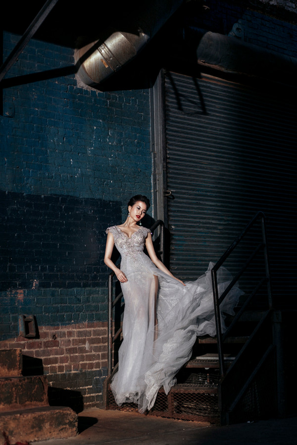 Trong chuyến đi công tác tại Mỹ vừa qua, diễn viên Đinh Ngọc Diệp đã thực hiện một bộ ảnh khá ấn tượng khi hóa thân thành một cô dâu đầy nội tâm giữa phố Broadway.