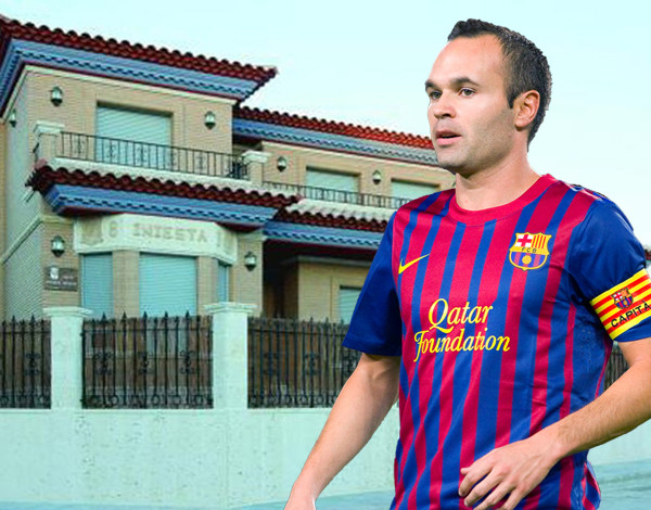 Tiền vệ Iniesta thể hiện tình yêu sâu đậm với Barca bằng việc dùng ngói có hai màu truyền thống của đội bóng để lợp. Ngay giữa nhà có tấm biển in tên và số áo của anh. Bạn bè Iniesta còn cho biết, nội thất trong nhà cũng mang hai màu chủ đạo này, ở bể bơi còn gắn logo của Barca