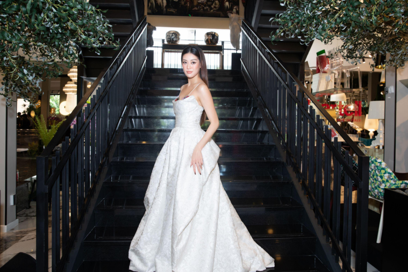 Trong lần xuất hiện này, Hoa hậu Ngọc Châu chọn cho mình chiếc váy ngắn hai dây có điểm nhấn là lông vũ mềm mại, khoe khéo đôi chân thon dài. Cô chọn tông trang điểm làm nổi bật làn da nâu khoẻ khoắn. Hoa hậu Khánh Vân cũng chọn váy hai dây màu trắng thanh lịch nhưng có thiết kế dài chạm đất. Người đẹp sinh năm 1995 gây thương nhớ với má hồng đem lại nét đẹp dịu dàng.