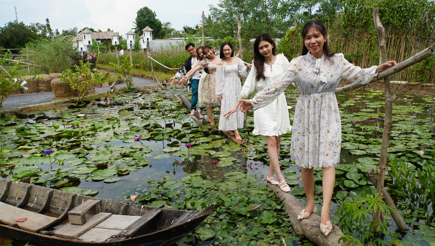 | Khách trải nghiệm tại khu du lịch Ông Đề, huyện Phong Điền, TP Cần Thơ. Ảnh: Hòa Hội |