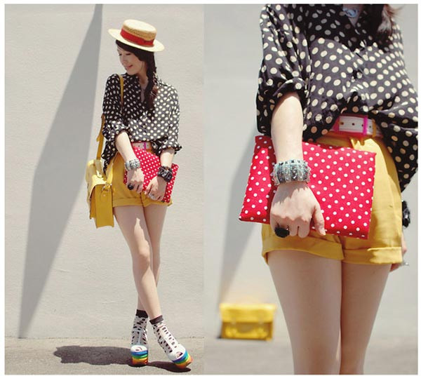 Giày hay phụ kiện cho mái tóc cũng không thiếu họa tiết chấm bị đâu nhé: