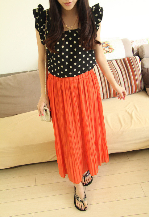 Họa tiết chấm bi khá đơn giản nhưng cũng khá bắt mắt. Khi phối hợp cùng nhau, bạn chỉ nên chọn chân váy hoặc áo có họa tiết chấm bi thôi nhé!