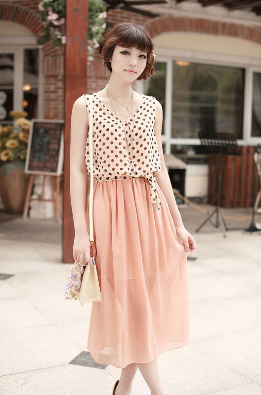 Váy liền thân chấm bi nhẹ nhàng là trang phục lý tưởng cho những buổi đi chơi hay dạo phố cùng chàng.