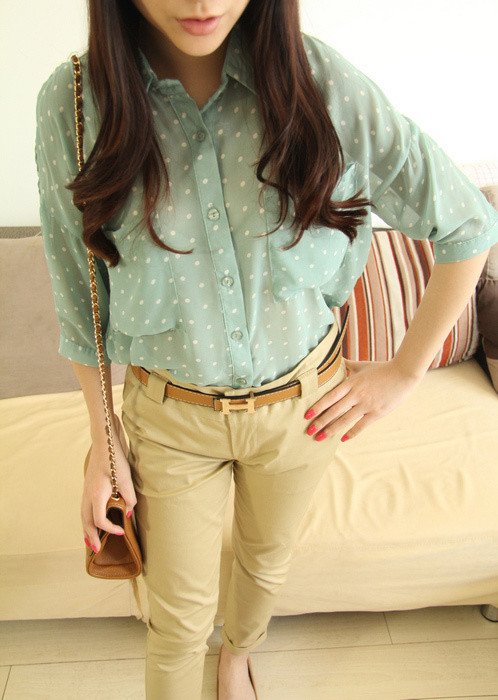 Áo chấm bi kết hợp cùng quần short lại cho bạn vẻ đẹp năng động, khỏe khoắn. Cách mix đồ này được các bạn gái rất ưa chuộng khi đi chơi hay đi dã ngoại cùng bạn bè.