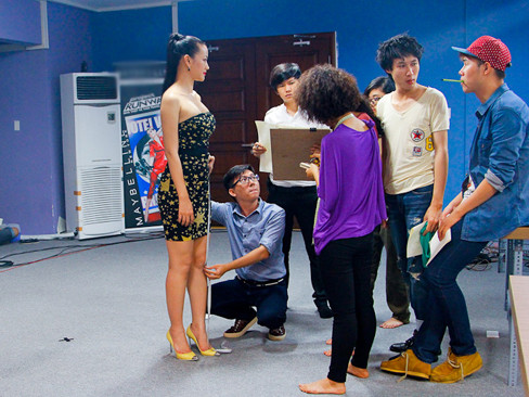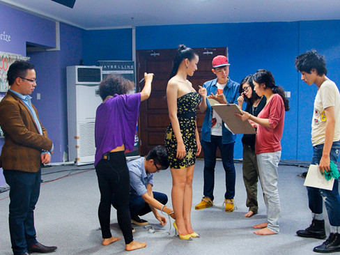 Những hình ảnh mới nhất từ chương trình cho thấy, Maya không chỉ là người giao đề tài, mà còn đích thân đứng ra làm “người mẫu” để các nhà thiết kế tác nghiệp lấy số đo.