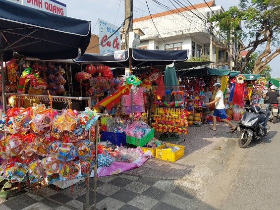 Những ngày này tại các cửa hàng bán đồ chơi trung thu cho trẻ em tấp nập người mua. Tại TP. Đồng Hới (Quảng Bình) các tuyến đường chuyên bán đồ chơi Trung thu như: Tố Hữu, Ngô Gia Tự, Mẹ Suốt ... rực rỡ hơn bởi sắc màu của các mặt hàng đồ chơi được bày bán.
