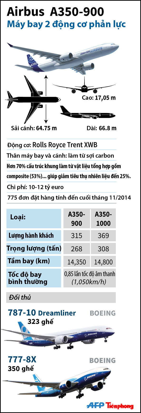 Cùng khám phá siêu máy bay A350-900 thuộc dòng A350 XWB với những đột phá về công nghệ theo đồ họa dưới đây:
