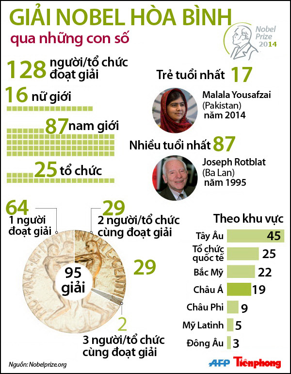 [ĐỒ HỌA] Giải Nobel Hòa bình qua những con số