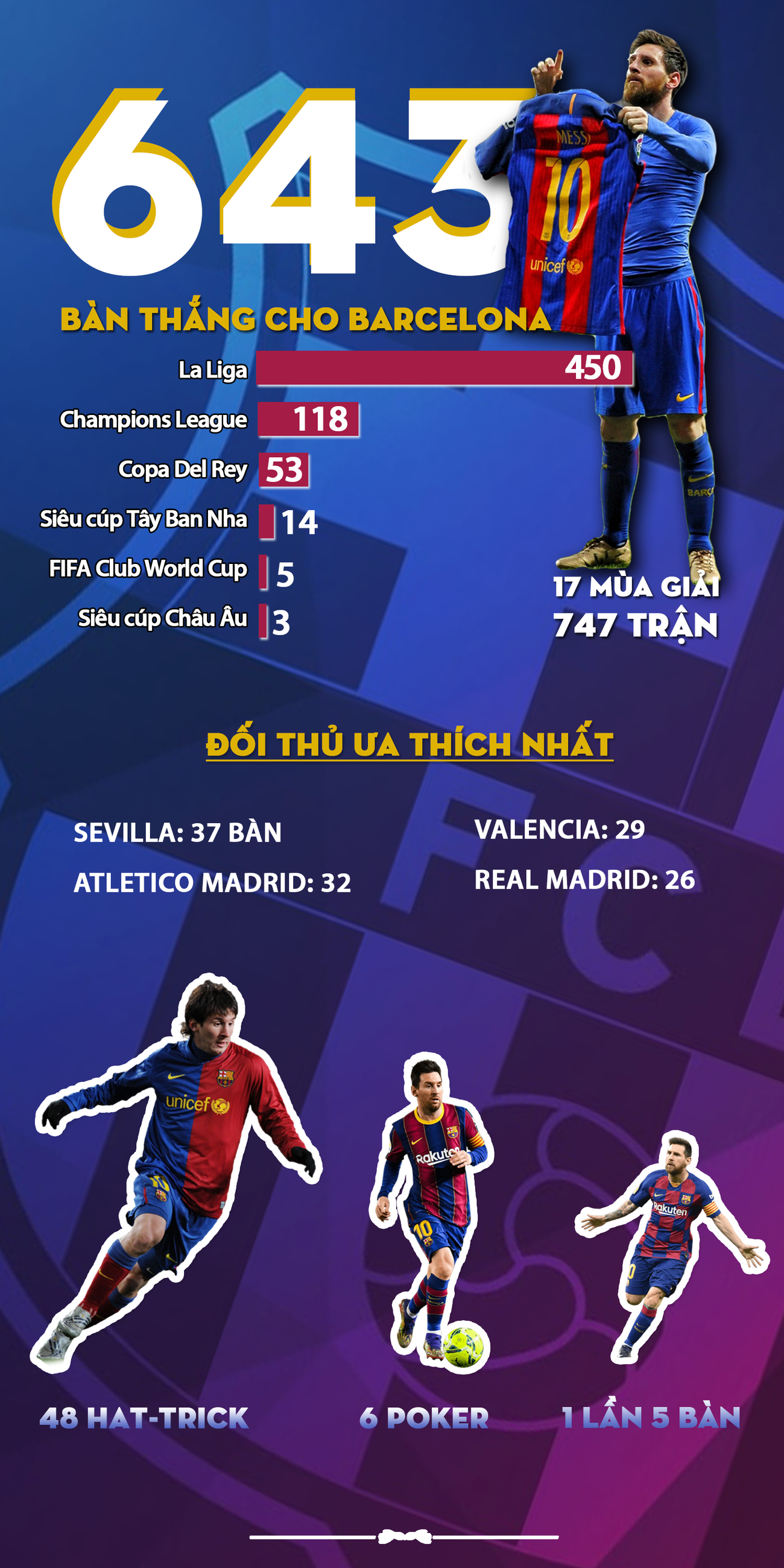 TPO - Messi đã có 643 bàn thắng cho Barcelona sau pha lập công trong trận gặp Valencia rạng sáng nay. Siêu sao người Argentina chính thức cân bằng kỷ lục của Pele về số bàn thắng ghi cho một đội bóng.