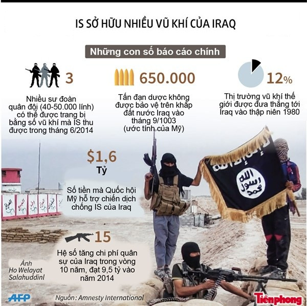 TPO - Theo ước tính của Mỹ, có khoảng 650.000 tấn đạn dược không được bảo vệ nằm khắp Iraq. Nhà nước Hồi giáo tự xưng IS đang sở hữu rất nhiều vũ khí, đạn dược thu được tại đất nước này. Trong khi đó Tổ chức Ân xá Quốc tế (AI) nhận định là do sự vô trách nhiệm về cung cấp và quản lý vũ khí trong nhiều thập kỷ qua.