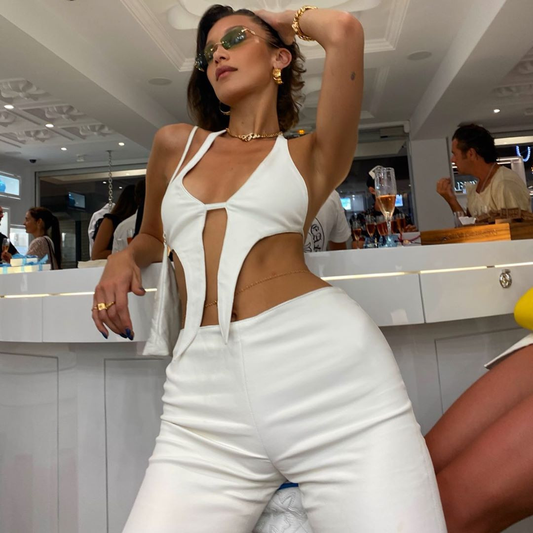 Trước đó, Bella từng gây sốt mạng xã hội khi chia sẻ loạt ảnh mặc áo yếm siêu mỏng, "thả rông" vòng một trên bãi biển.