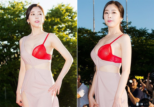 Jeon Se Hong gây phản cảm vì diện nội y trắng nổi bật qua lớp vải đỏ mỏng tang, khi tham gia một sự kiện thảm đỏ.