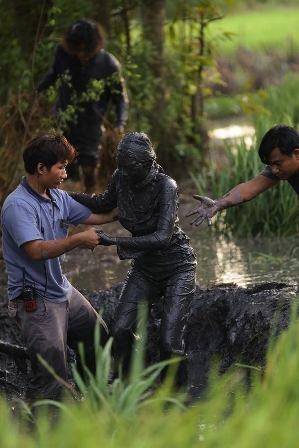 | Diễn viên Thanh Tú “tắm bùn” trong nhiều giờ đồng hồ khi tham gia “Thất Sơn Tâm Linh” |