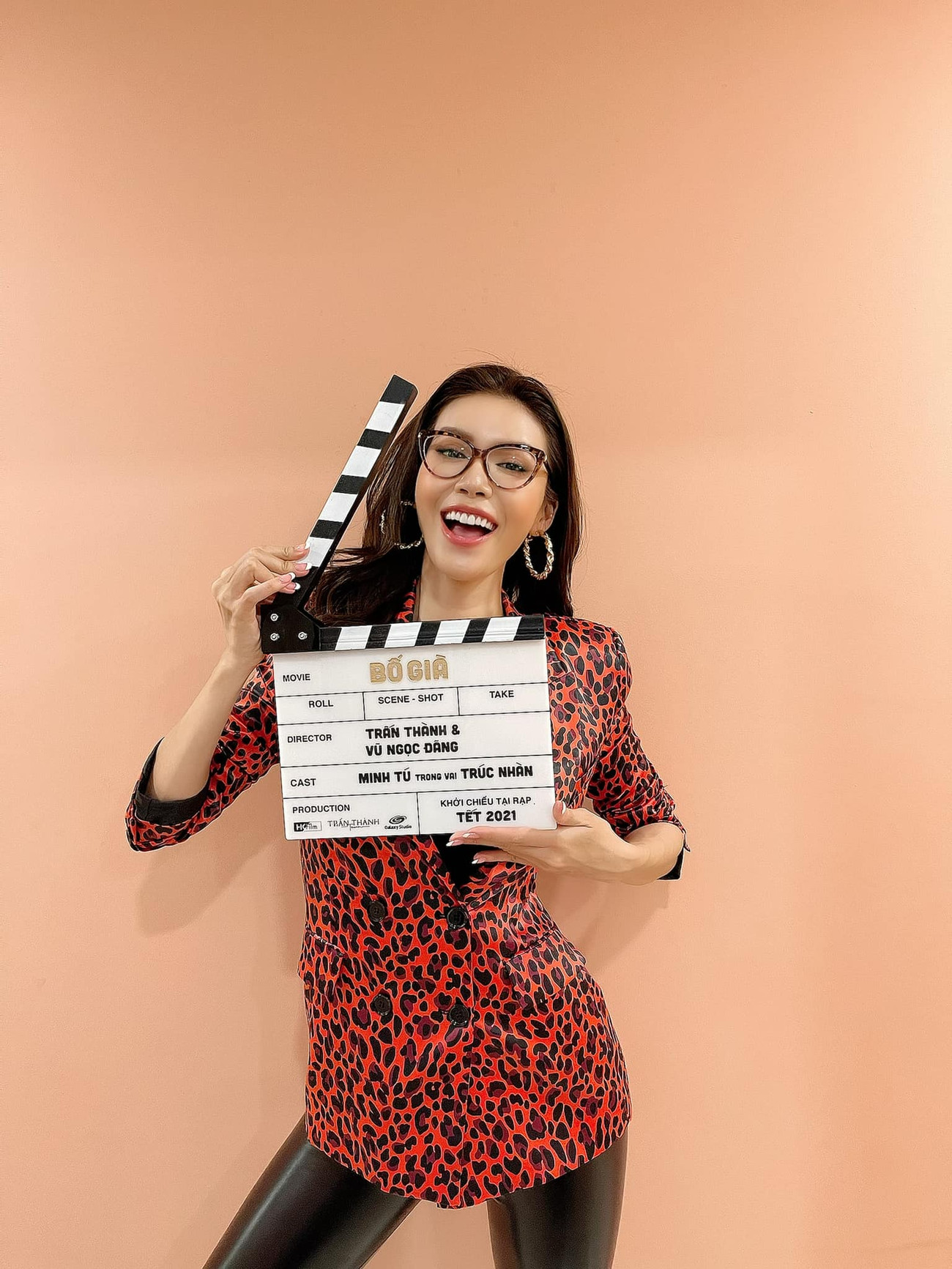 Minh Tú khoe vòng một nóng bỏng với quần da và áo hoạ tiết da báo cá tính.