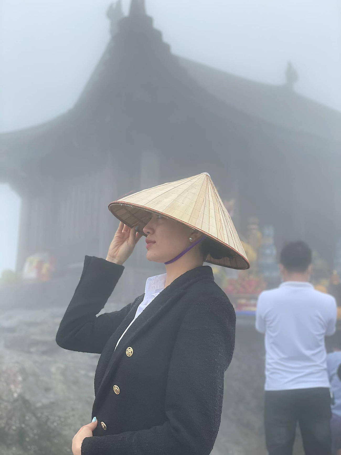 Á hậu Lệ Hằng vãn cảnh chùa Đồng, Yên Tử trong ngày mưa phùn tháng ba.