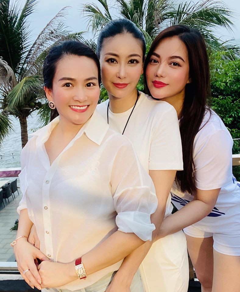 Hoa hậu Hà Kiều Anh hội ngộ hội bạn thân là diễn viên Trương Ngọc Ánh và Anh Thơ - bà xã của diễn viên Bình Minh.