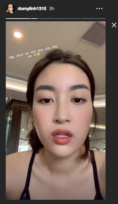 Hoa hậu Đỗ Mỹ Linh mặc gợi cảm trong phòng gym, cô than thở: "tập chút mà thở như cún vậy".