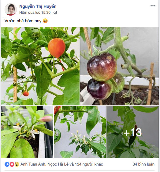 Hoa hậu Nguyễn Thị Huyền khoe vườn rau xanh mướt tự trồng.