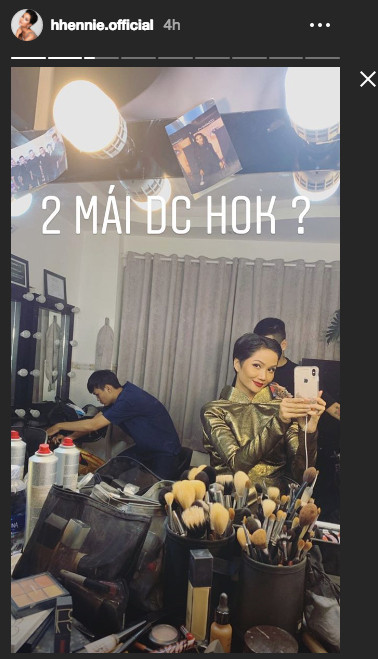 Hoa hậu H'Hen Niê khoe ảnh hậu trường make-up chuẩn bị ghi hình cho một show truyền hình.