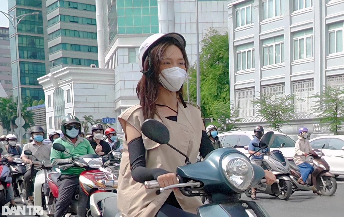 - Thông thường quản lý sẽ sắp xếp các show diễn của tôi tập trung vào một ngày. Vì chỉ đi làm một mình và để tiện di chuyển nhiều điểm nên tôi đi bằng xe máy, hết một ngày làm việc thì trở về nhà. Xe máy giống như "đặc sản" của dân Sài Gòn. Tôi rất thích đi làm bằng chiếc xe của mình vì vừa rất mát, vừa có thể ngắm cảnh.