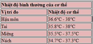 Nhìn ở bảng trên, mẹ cũng thấy là ở các vị trí đo khác nhau trên cơ thể sẽ cho các chỉ số nhiệt độ khác nhau.