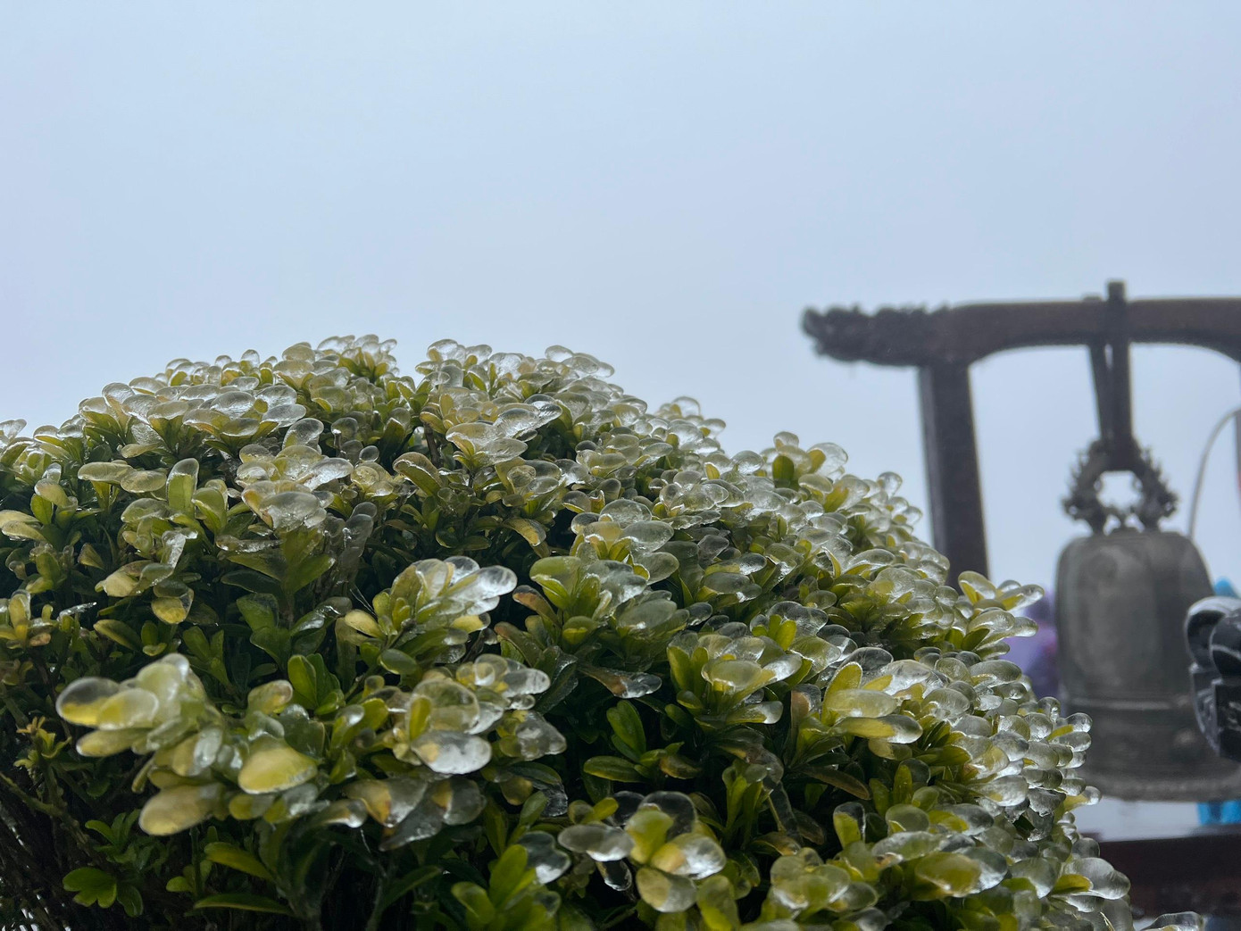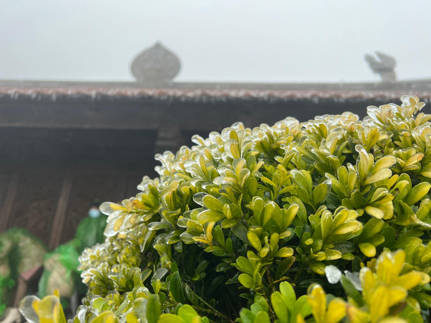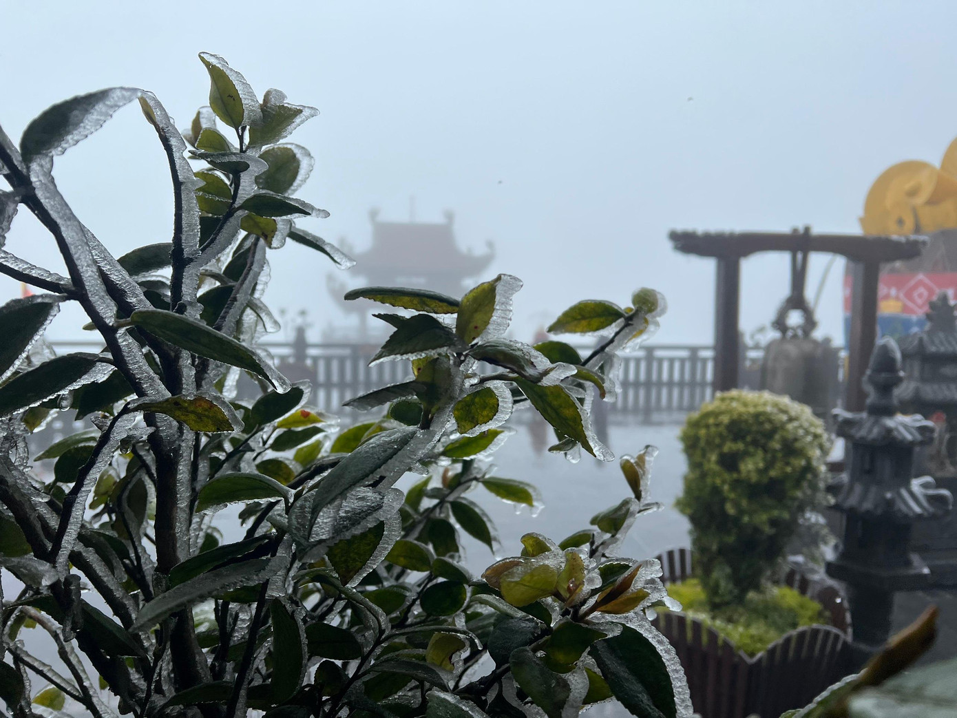 Theo anh Quyền Anh Tuấn, nhân viên khu du lịch Sun World Fansipan Legend, băng giá xuất hiện từ 6h14 sáng ngày 2/4, tại khu vực nhà ga đến cáp treo Fansipan. Nhiệt độ ghi nhận tại thời điểm đó là -1 độ C. Và tới 9h sáng nay, băng vẫn tiếp tục tạo bao phủ trên các nhành cây, hoa, tạo nên những bộng hoa băng trong như pha lê. Mái vòm của nhà ga đến cáp treo Fansipan cũng phủ trắng băng.