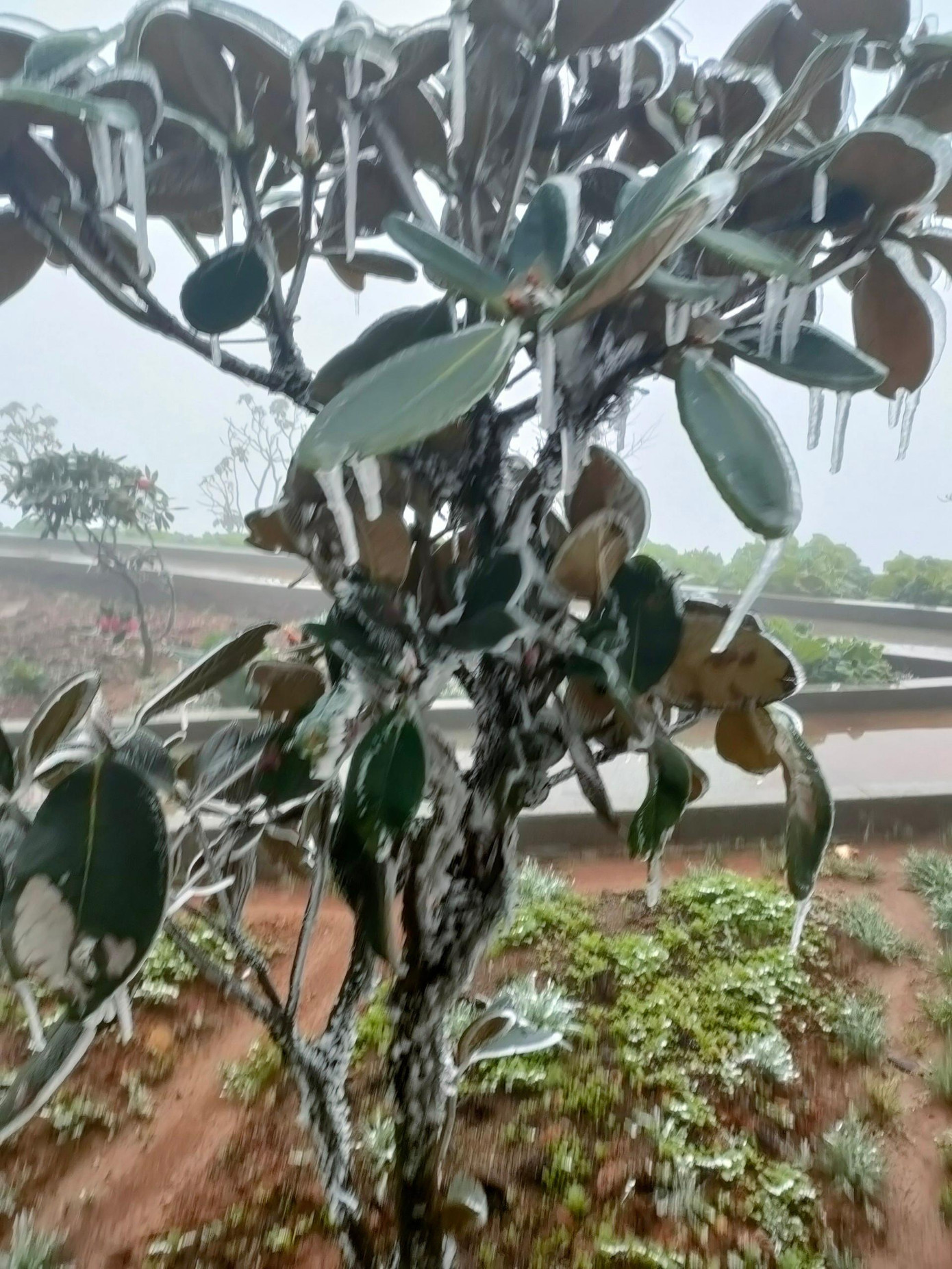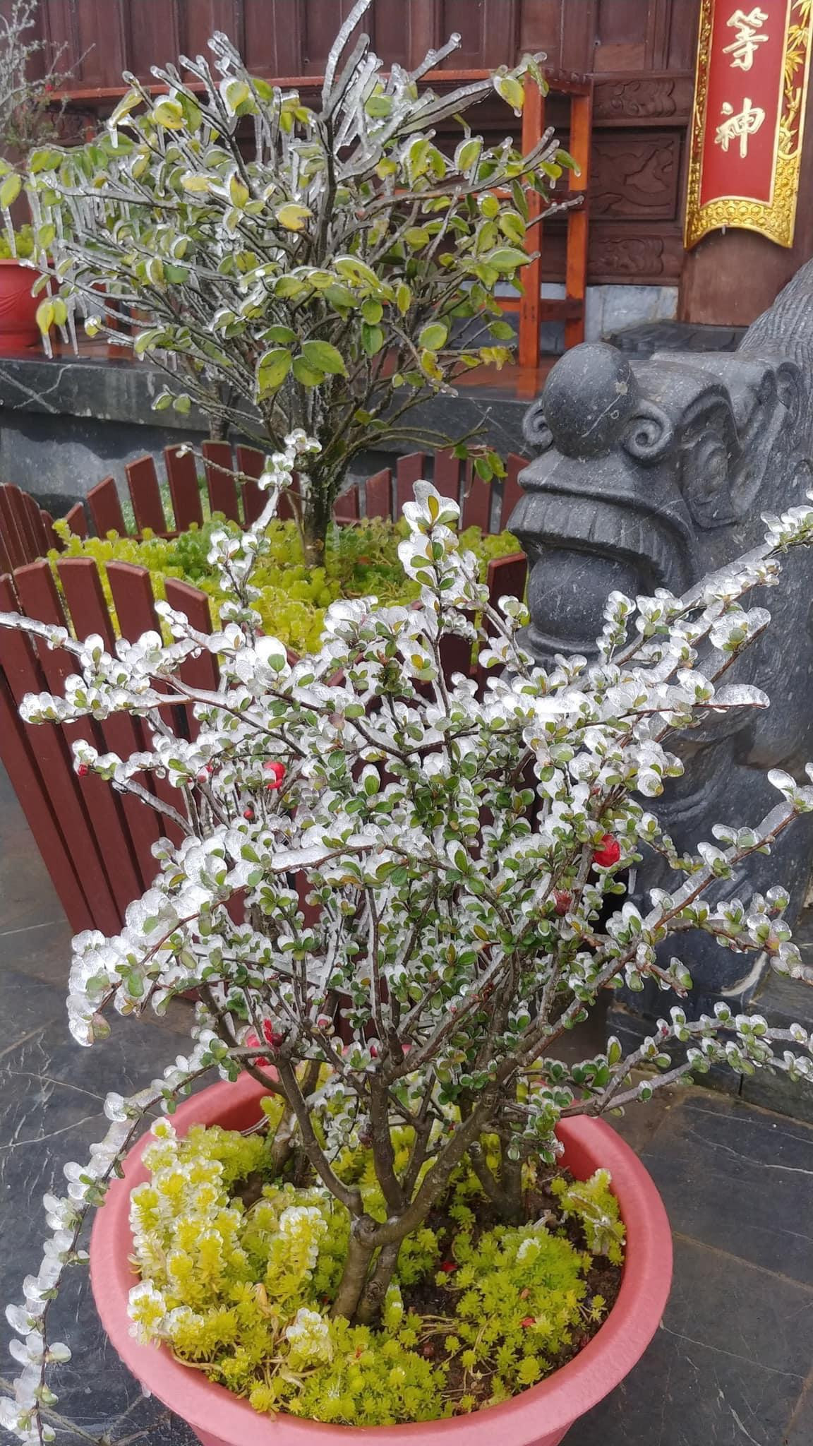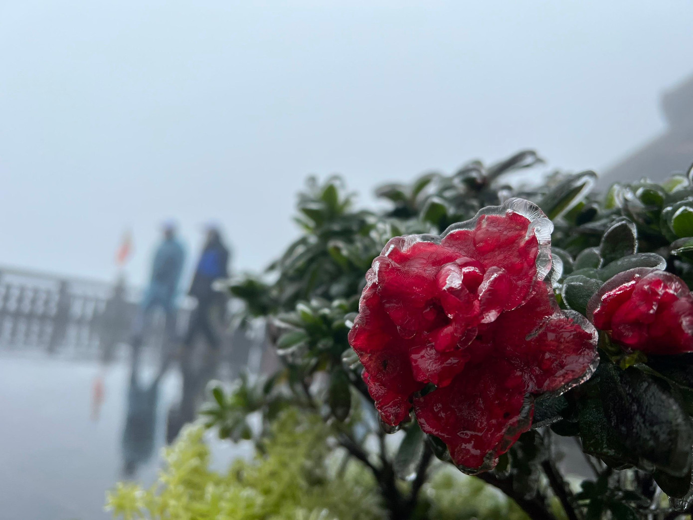 Theo anh Quyền Anh Tuấn, nhân viên khu du lịch Sun World Fansipan Legend, băng giá xuất hiện từ 6h14 sáng ngày 2/4, tại khu vực nhà ga đến cáp treo Fansipan. Nhiệt độ ghi nhận tại thời điểm đó là -1 độ C. Và tới 9h sáng nay, băng vẫn tiếp tục tạo bao phủ trên các nhành cây, hoa, tạo nên những bộng hoa băng trong như pha lê. Mái vòm của nhà ga đến cáp treo Fansipan cũng phủ trắng băng.
