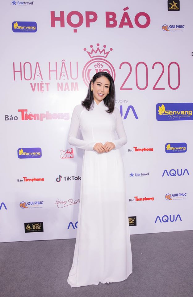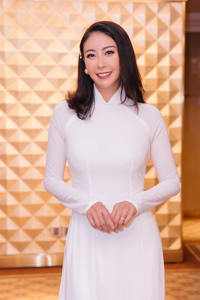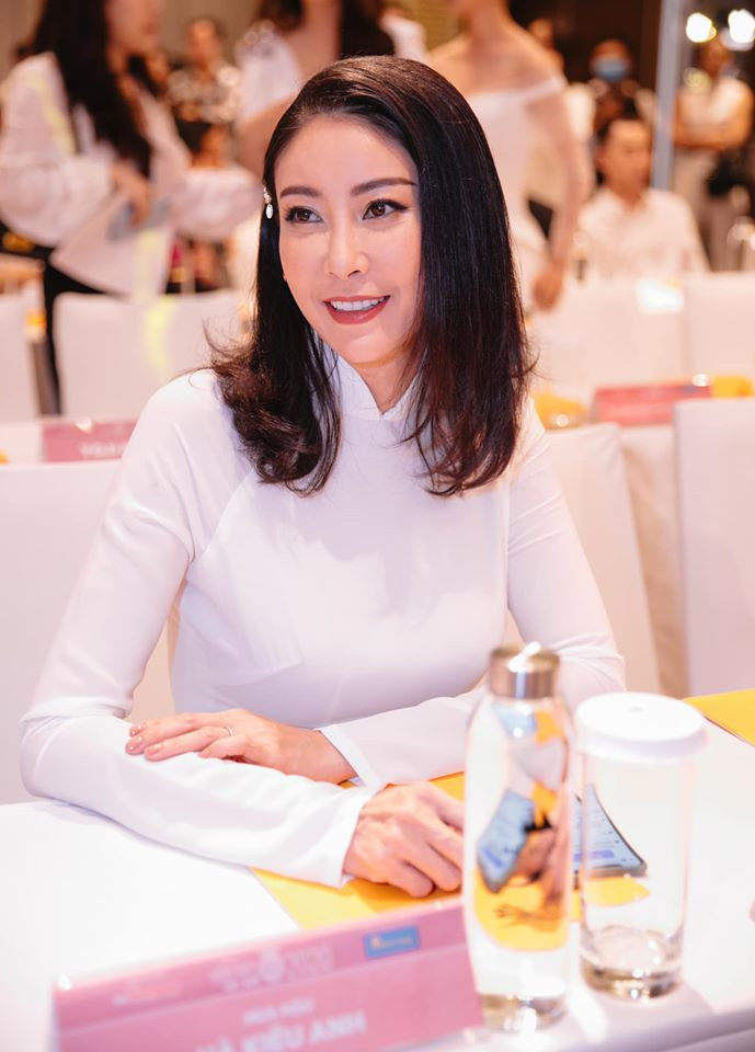 Không diện trang phục cầu kỳ, lộng lẫy như thường lệ nhưng Hà Kiều Anh không vì thế mà kém nổi bật. Ngược lại, cô trở nên cực kỳ trẻ trung và duyên dáng so với độ tuổi 44 của mình khi diện áo dài trắng đơn giản, thanh lịch.