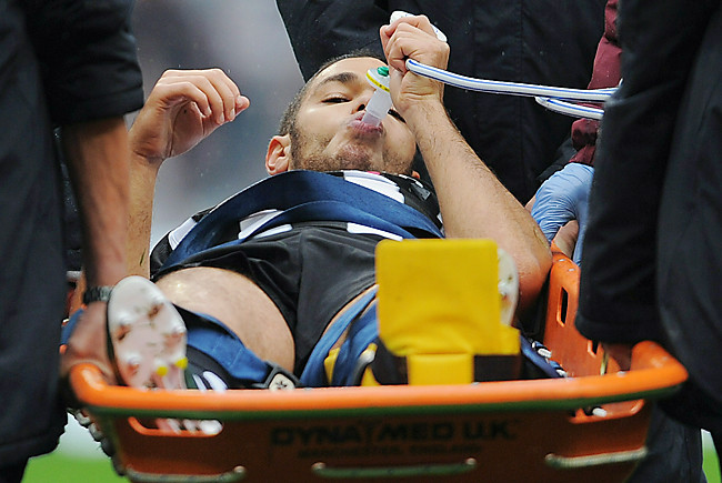 Cầu thủ người Pháp phải rời sân bằng cáng với cẳng chân bị gẫy