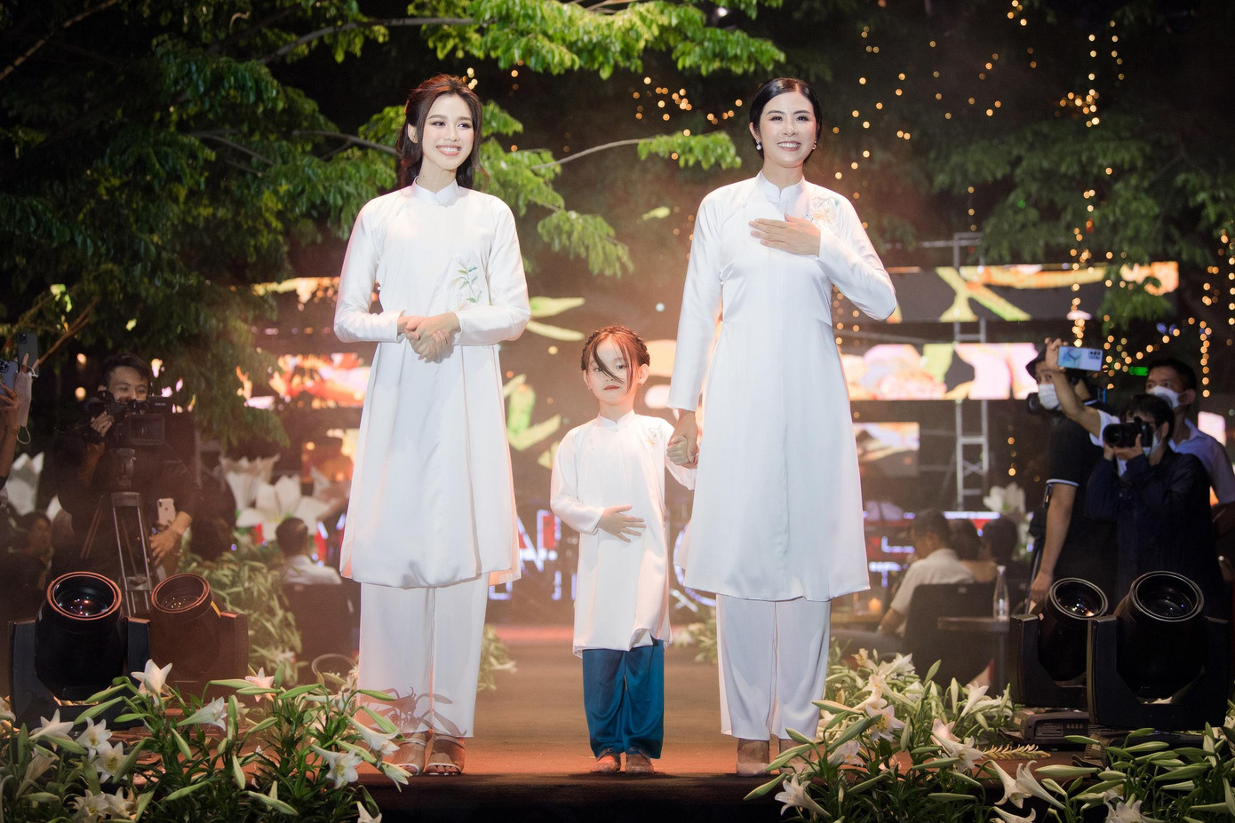 | Cả hai cùng diện những mẫu áo dài trắng tinh khôi do chính Ngọc Hân thiết kế. |